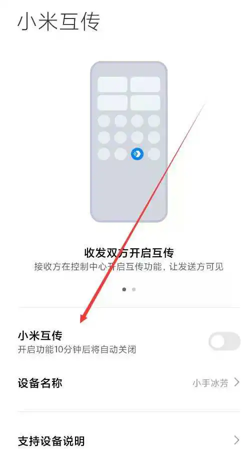 3.在小米互传页面点击打开“小米互传”后面的按钮;