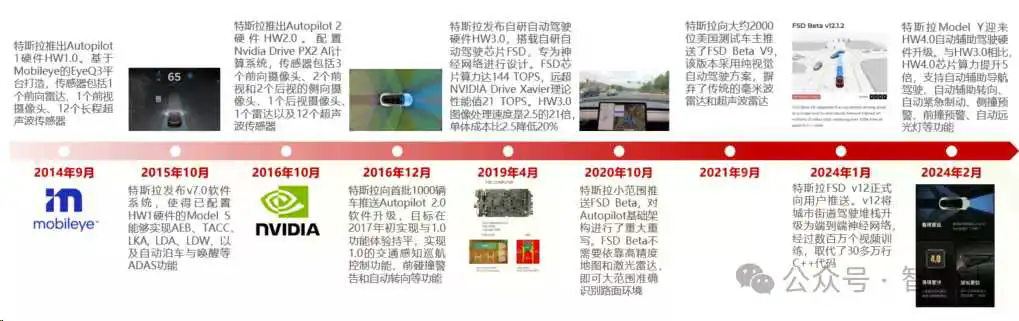 - 特斯拉自动驾驶系统的发展历程从2013年开始,最初采用外部合作方式。