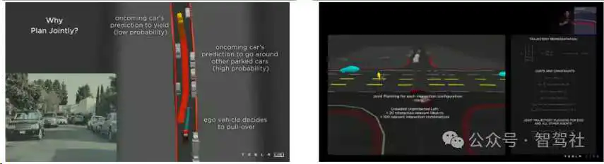 此外,特斯拉的规划系统还需要解决多代理联合轨迹规划问题,即考虑自己和所有其他车辆、行人的运动轨迹,对所有可能的行驶方案进行评估,并快速选出最优行驶方案。这一评估过程通常需要在10毫秒左右完成,而在复杂场景下,如繁忙的路口,可能需要50毫秒。这种高效的规划能力使得特斯拉的自动驾驶系统能够在保证安全性的同时,实现类似人类驾驶员的驾驶操作,提高了自动驾驶的效率和舒适性。