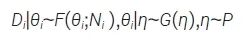 假设存在K个满足要求的外部数据,分别用D1, D2,…, DK表示K个外部对照研究中的数据,记为De=(D1,…,DK)。令θ1,θ2,…,θK表示每个外部数据中感兴趣的参数。假设θ1,θ2,…,θK,θc是可交换的,模型表示为: