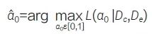其中C(α0)=1/∫L(θc|De)α0π0(θc)dθc。MPP 分母中包含积分项,大多数情况下几乎不可能推导出该积分的解析表达式,采用马尔可夫链蒙特卡洛采样(Markov chain Monte Carlo,MCMC)时计算复杂度和耗时都较高,影响了实用性和效率。对此,Gravestock和Held[11] 提出了一种经验Bayes(Empirical Bayesian)方法来确定幂参数,其核心思想是寻找使得幂参数的边际似然函数达到最大的α0,即: