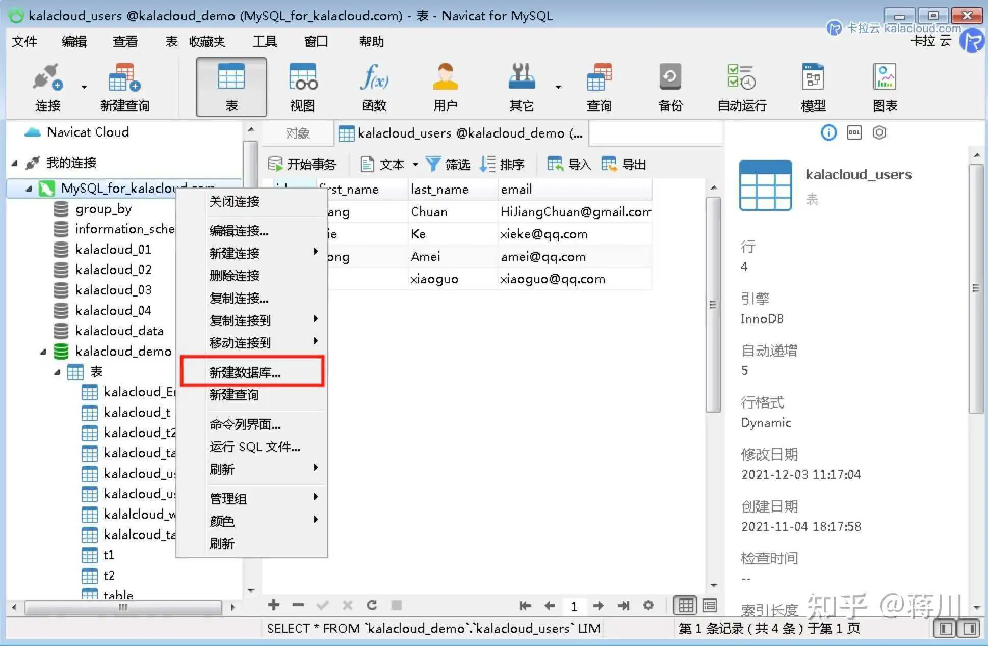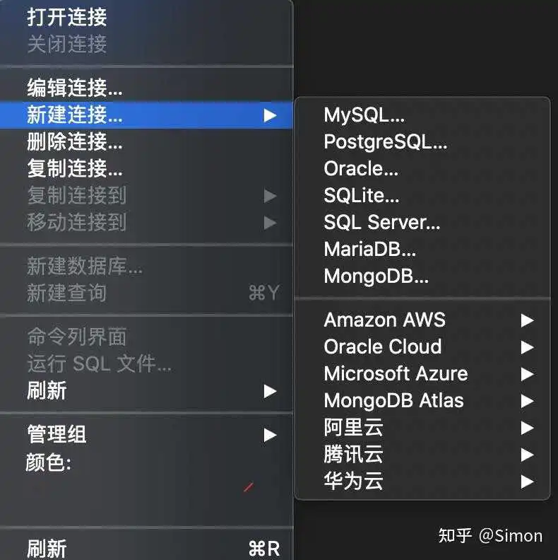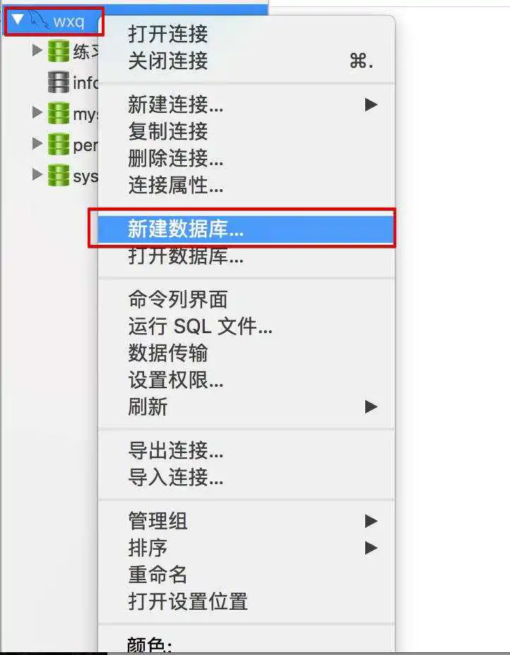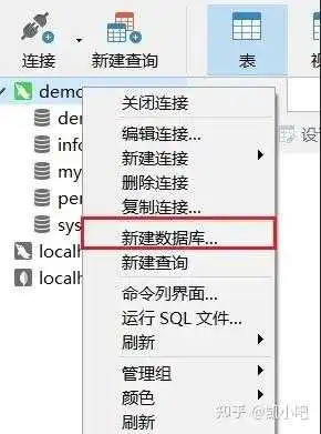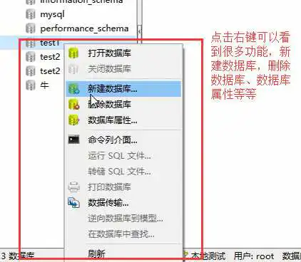 如果要新建数据库,可以右键对应的连接,然后点击新建数据库即可