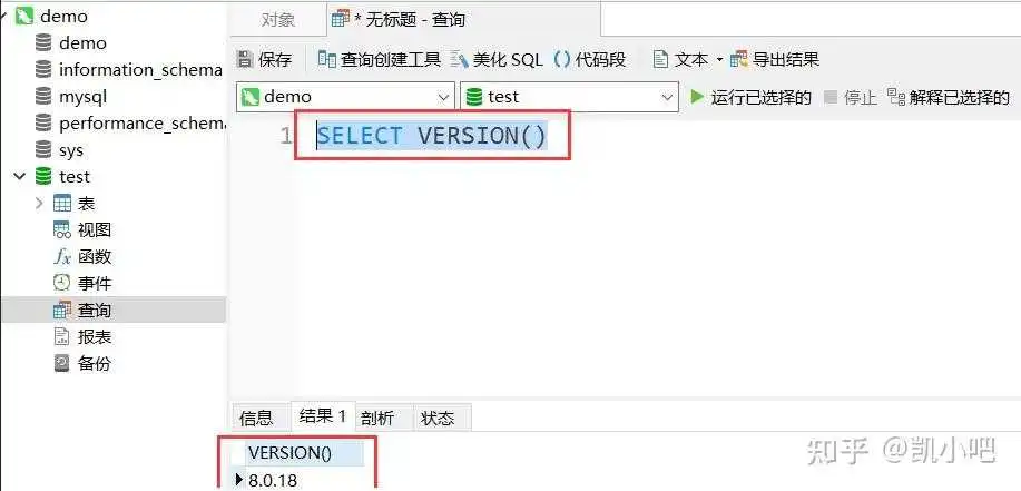 在查询界面输入 select version()