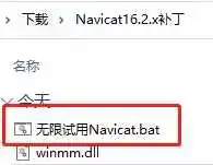 4.先不要动安装包,找到补丁,先解压,运行无限试用Navicat.bat文件。