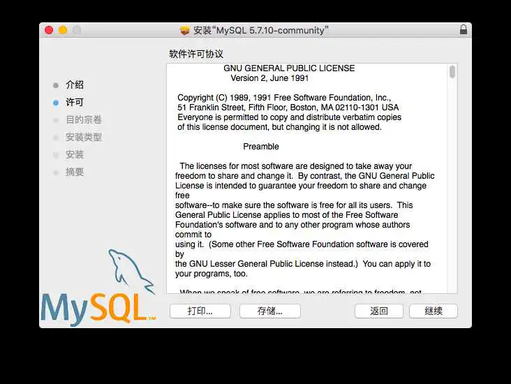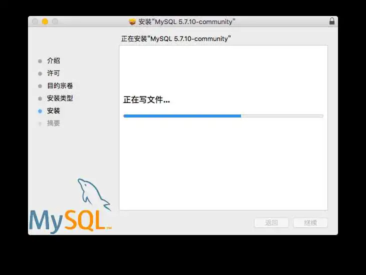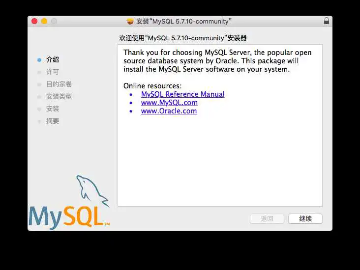 双击安装文件进行安装,出现如下.pkg文件,然后再双击窗体中的“mysql-5.7.10-osx10.9-x86_64.pkg”文件,开始进行安装: