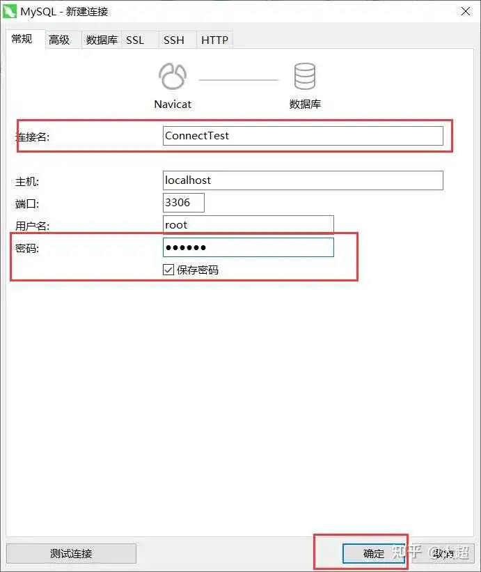 然后点击确定。如果说不记得密码,可以点击连接测试进行测试密码正确与否。