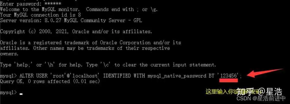 2、进入mysql,执行下面语句:ALTER USER 'root'@'localhost' IDENTIFIED WITH mysql_native_password BY '';