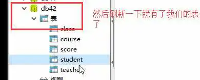 注:student表的出现,好像跟网速有关,要等待一段时间,可以在“练习一”(或者“表”或者左侧栏空白处,进行右键刷新查看。