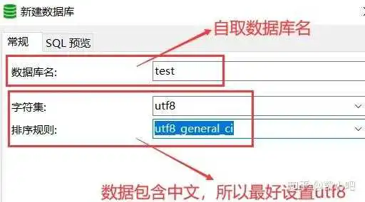- 数据库名:(任意,最好为英文)