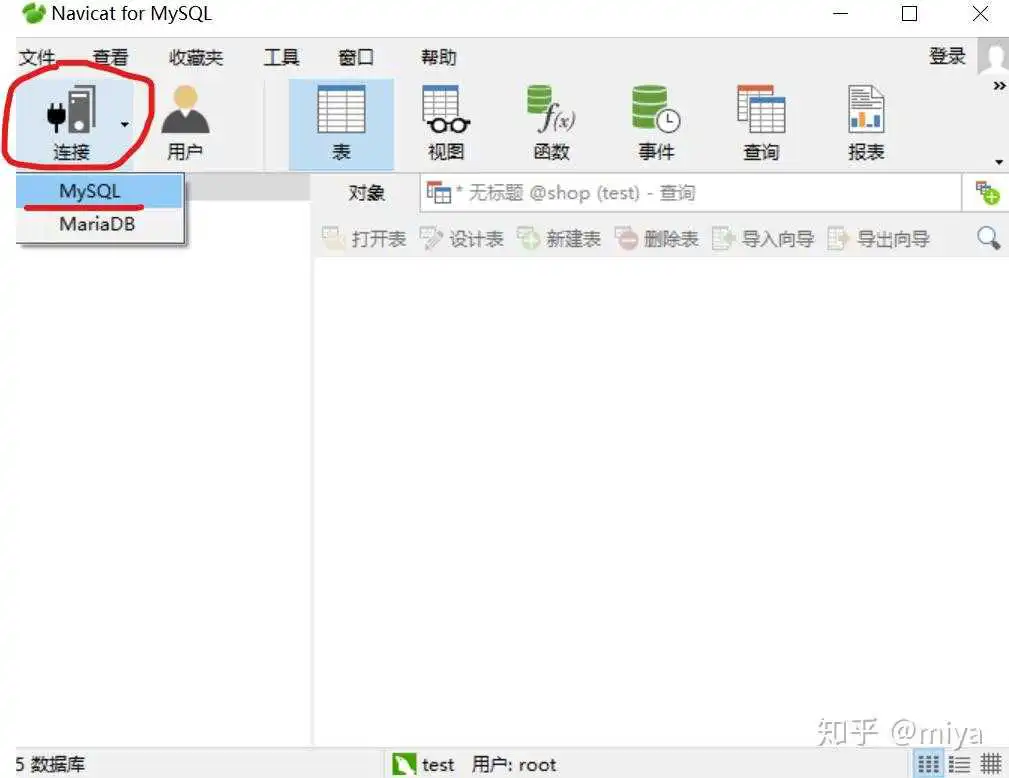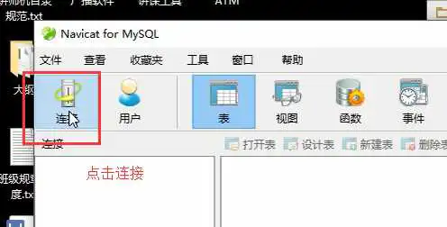 打开 navicat ,点击 连接 ,选择 数据库