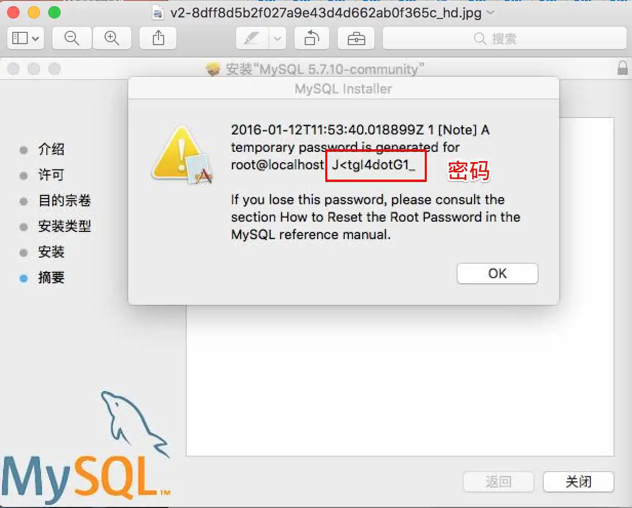 (其中是你预设置的root密码,我的密码是: