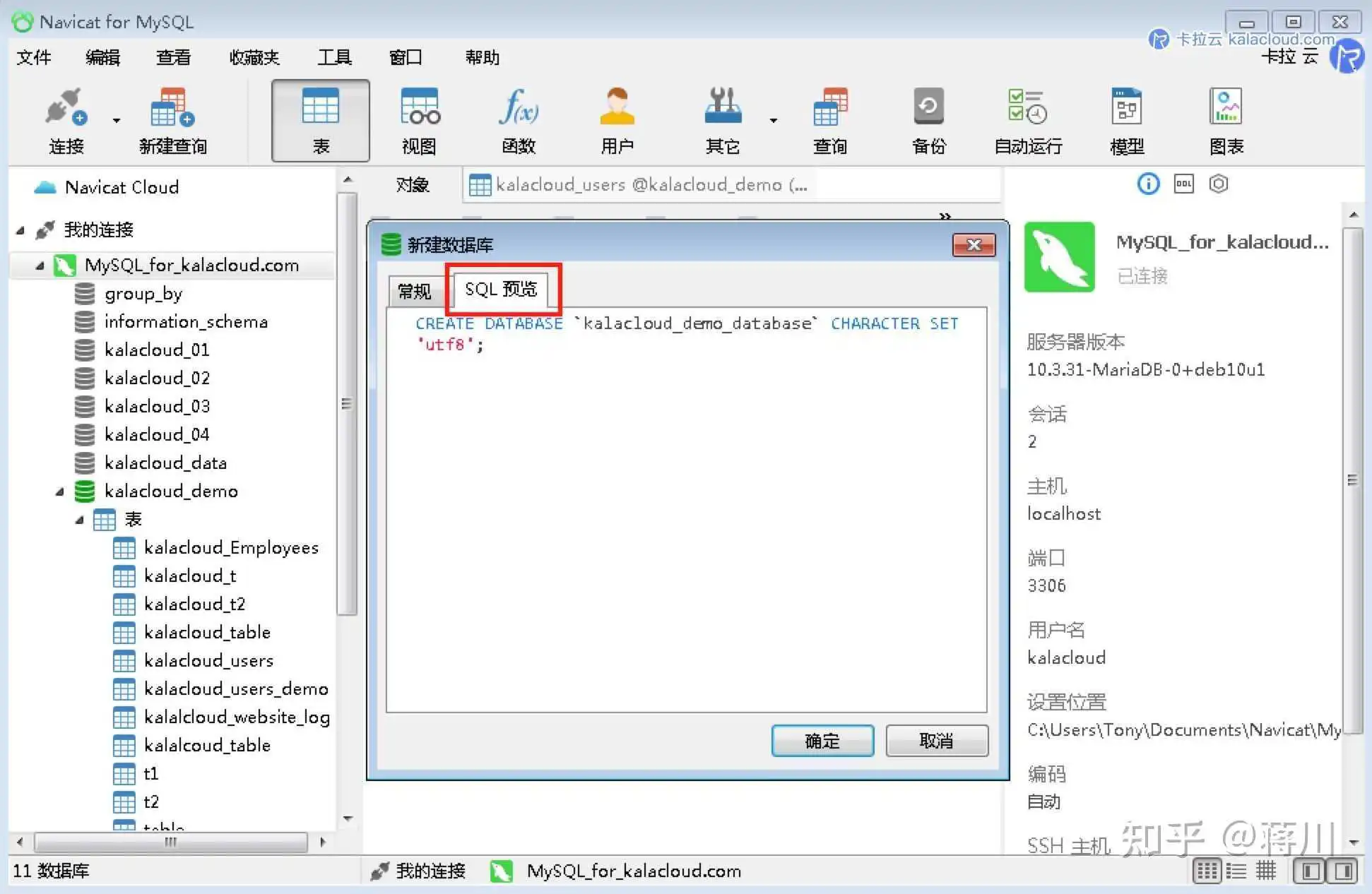 弹出以下界面 (以MySQL为例),熟悉各部分的作用