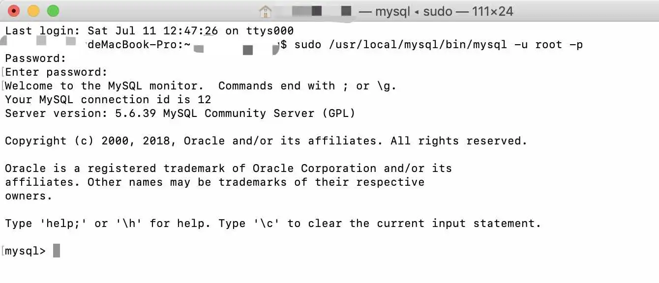 mysql -u root -p