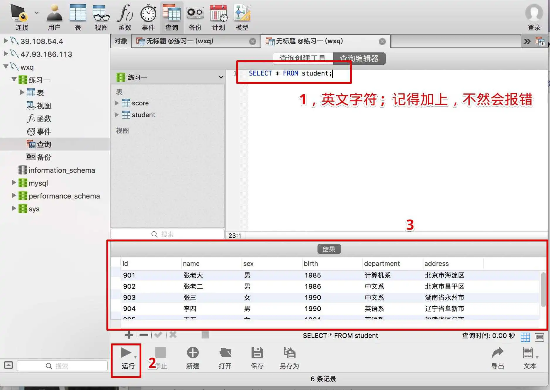 (2)用Navicat for MySQL来练习SQL语句