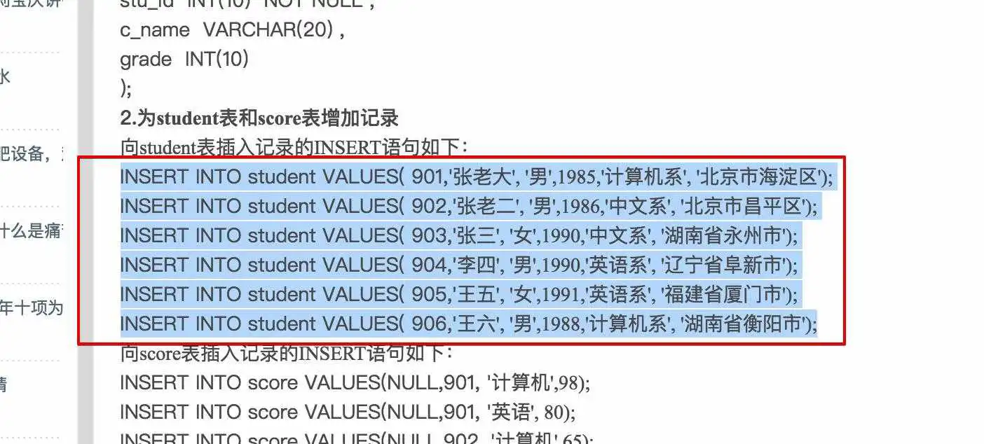 将练习题(链接:MySQL查询语句练习题,测试基本够用了_willcaty_新浪博客 )中的这段代码复制过去。