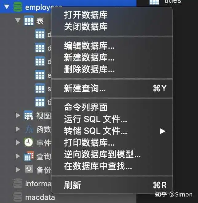 双击 或 右键 打开数据库(灰色图标变亮表示打开)