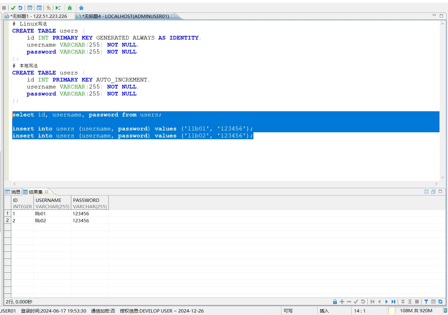 但在上面执行 ALTER TABLE users RENAME TO sys_user; 这样的语句时,因为 users 和 sys_user 都是符合标识符命名规则的简单名称,不包含任何特殊字符,也没有与保留字重名,所以在大多数数据库系统中,包括达梦数据库,不加引号也是完全合法且推荐的写法。