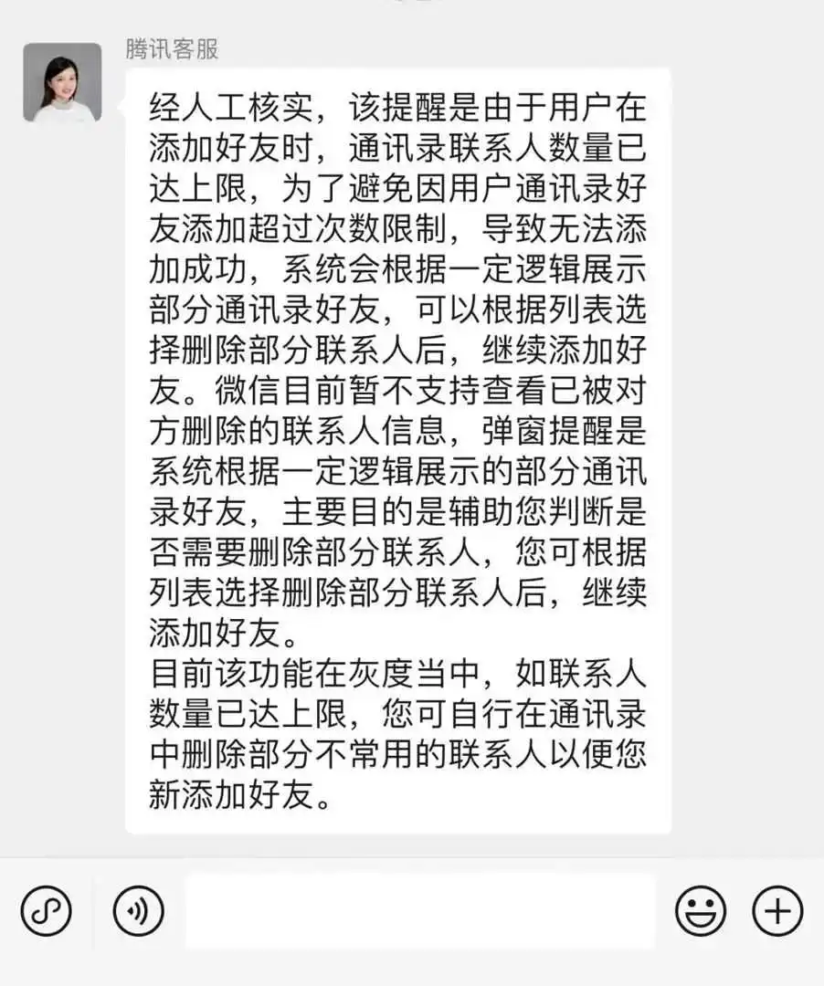 近日,微信方面向记者确认了此事,据微信方面透露,“微信用户达到1万好友上限后,添加新的好友时,会出现一个弹窗展示单删好友,用户可选择删除这些单删好友后继续添加好友。”