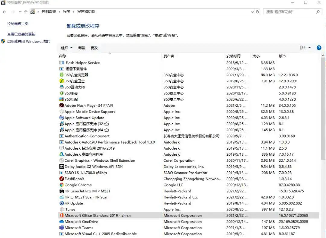 查看相应软件的版本,如下图所示,计算机安装的办公软件及版本为Microsoft office Standard 2019,安装的杀毒软件版本为360杀毒软件。