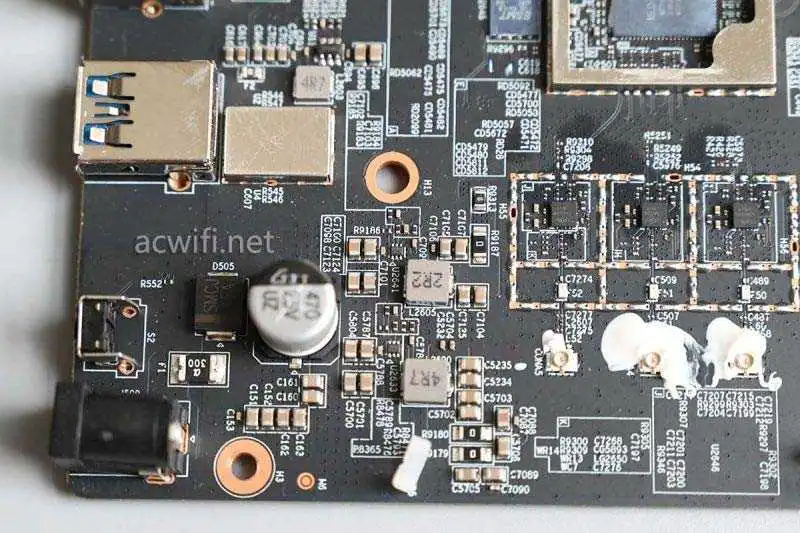 USB接口没有做金属屏蔽,USB电路用了屏蔽罩。只要附近有2.5G网口,这个USB3.0的电路屏蔽就很有必要。