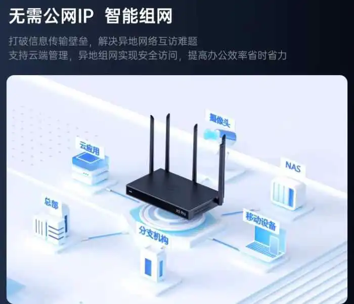 贝锐蒲公英云智慧组网最近推出的全新的企业路由器 X5 Pro,配备了新一代 Arm 双核芯片,不仅提升了组网速率,还能支持最高 300 台网络终端的稳定连接,异地组网性能显著提高了 261%,实现更高速的组网传输速度。支持单双 WAN 智能切换及双 WAN 负载均衡,有效保障连接的稳定性;还装备了一个 USB3.0 接口,支持网络卡、移动硬盘、打印机等 USB 设备接入,也可用于搭建私有云。在无线技术方面,支持 wifi6 双频并发,速率可达3000Mbps,提供 2.4GHz 和 5GHz 两个频段,5 根外置全向高增益天线,确保优异的穿墙性能和高速流畅的体验。