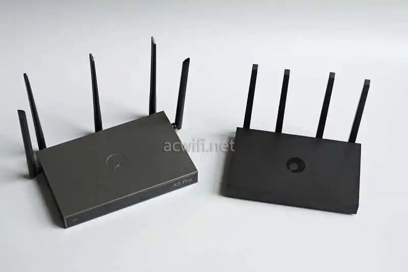 贝锐蒲公英新出了一款X5Pro,对比之前的X5的AX1800无线规格,提升到了AX3000。(下图左边是贝锐蒲公英X5Pro,右边是贝锐蒲公英X5)