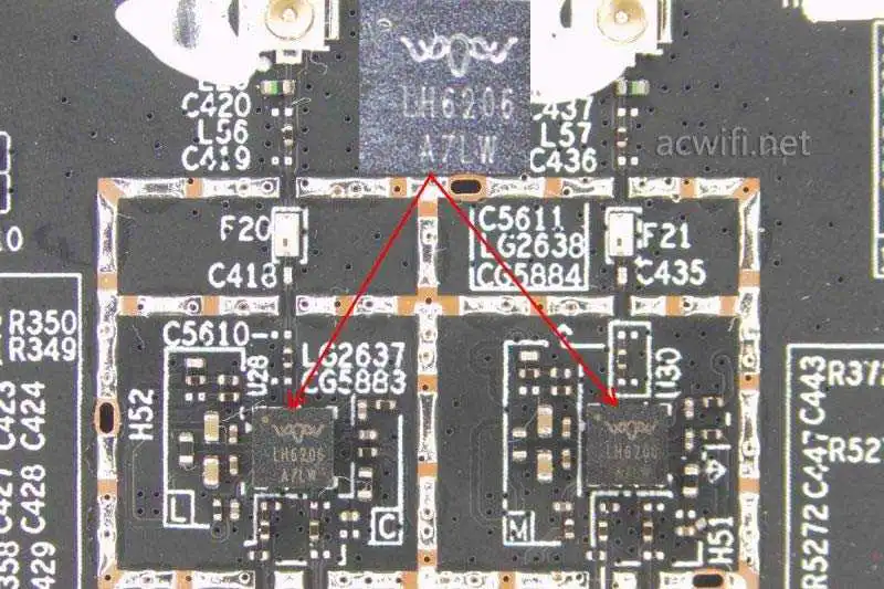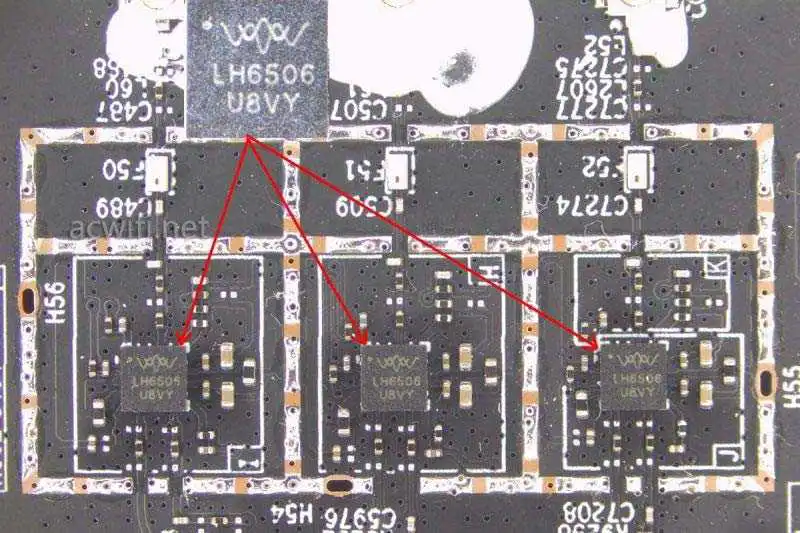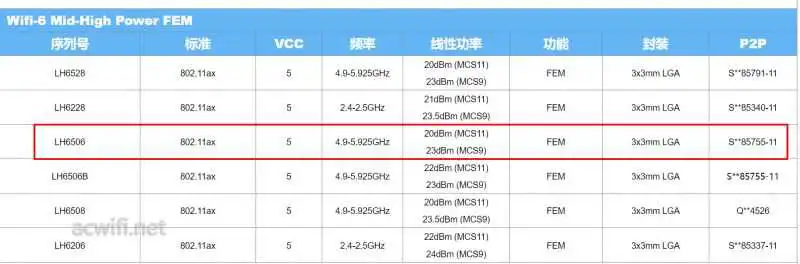 MT7976DAN的2.4G支持2T2R,5G支持3T3R,因此5G外置了三颗FEM芯片:LH6506,上海麓慧科技有限公司的产品。我第一次见。