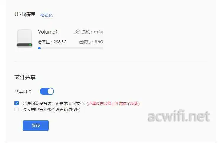 插入一个移动硬盘后开启共享: