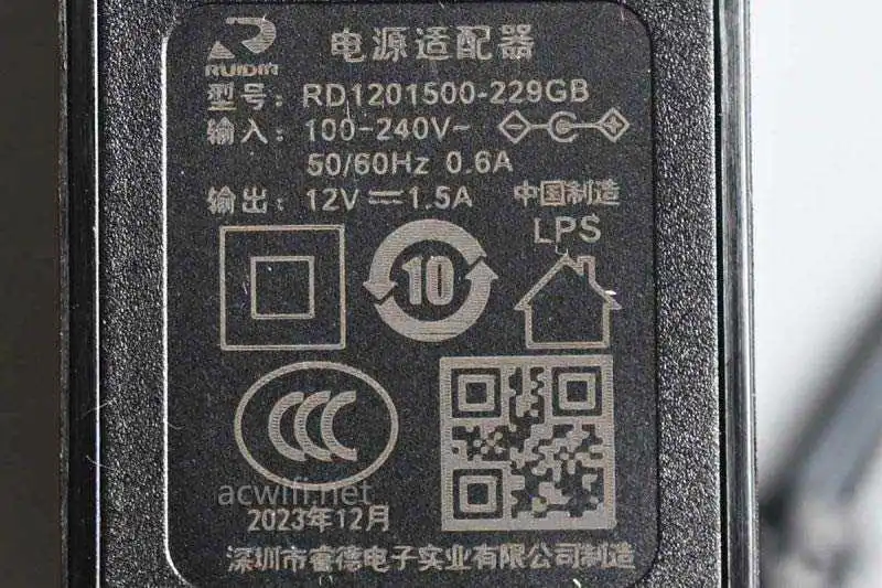 电源输出规格12V/1.5A,实测当插入2.5GWAN和千兆LAN网口之后,待机功率是5.4W,不算高。
