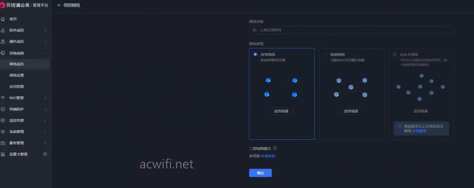 在异地组网菜单下选择“对等网络”(免费版)