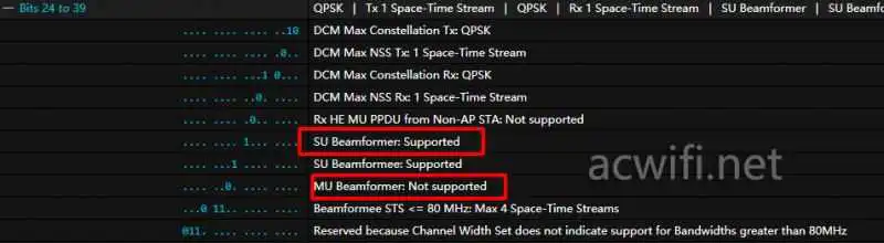 默认支持波束成形,不支持MU-MIMO