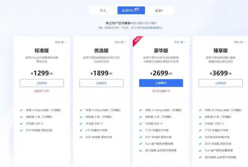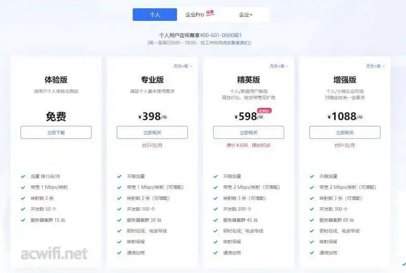 内网穿透功能各版本的价格:
