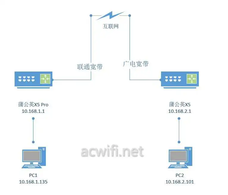 听说两台蒲公英路由器可以异地组网,即使没有公网IP,也可以让不在同一个网络下的电脑互相访问。 我有两条宽带,一条广电,一条联通。正好可以试试。