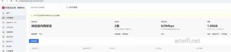 点击“管理花生壳”,进入一个管理平台界面。免费版的内网穿透,可以建2条映射。带宽是1Mbps,月总流量是1GB。加大带宽和流量,都是需要付费的。