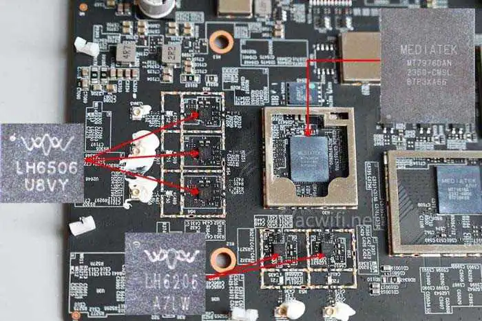 MT7981B连接着一颗无线射频芯片MT7976DAN: