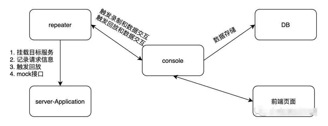 使用jvm-sandbox沙箱技术,通过Java agent或者attach方式挂载到Java应用上。repeater模块根据配置的规则录制或回放数据,console模块主要负责触发和数据交互。
