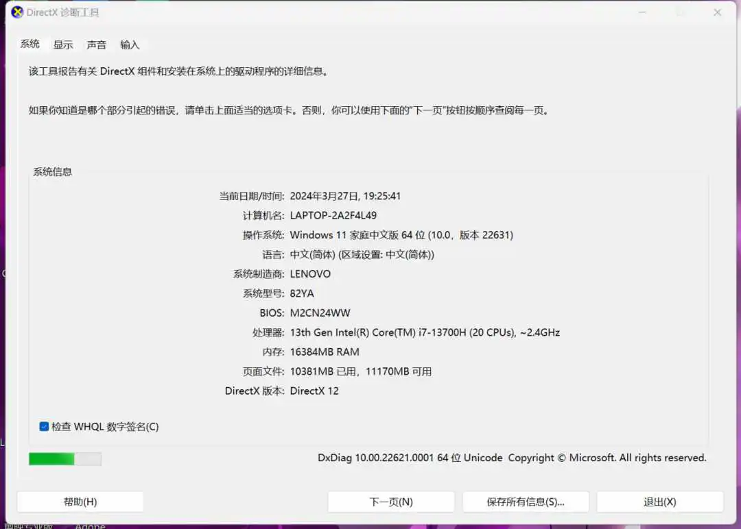 ”dxdiag“。