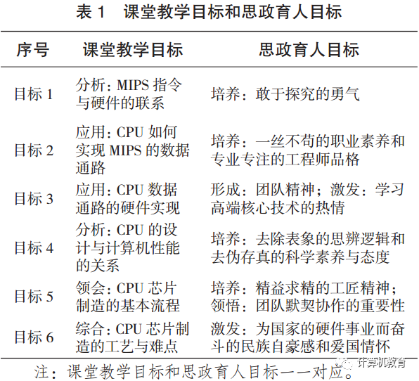 2 计算机硬件基础的课堂教学目标与思政元素挖掘